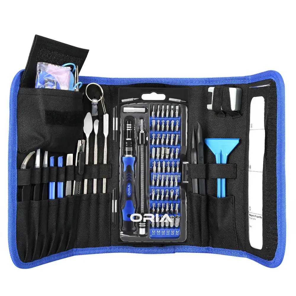 【 Набор многомагнитных отверток 】 - 86 в 1 Набор прецизионных отверток имеет больше инструментов, которые включают в себя нож, антистатические пинцеты, антистатический ремешок на запястье, штифт для извлечения sim-карты и присоска с ЖК-дисплеем, треугольная платформа, пластиковые шпули, металлические шпули, чехлы для sim-карт, инструмент для намагничивания и размагничивания, салфетка для очистки и так далее