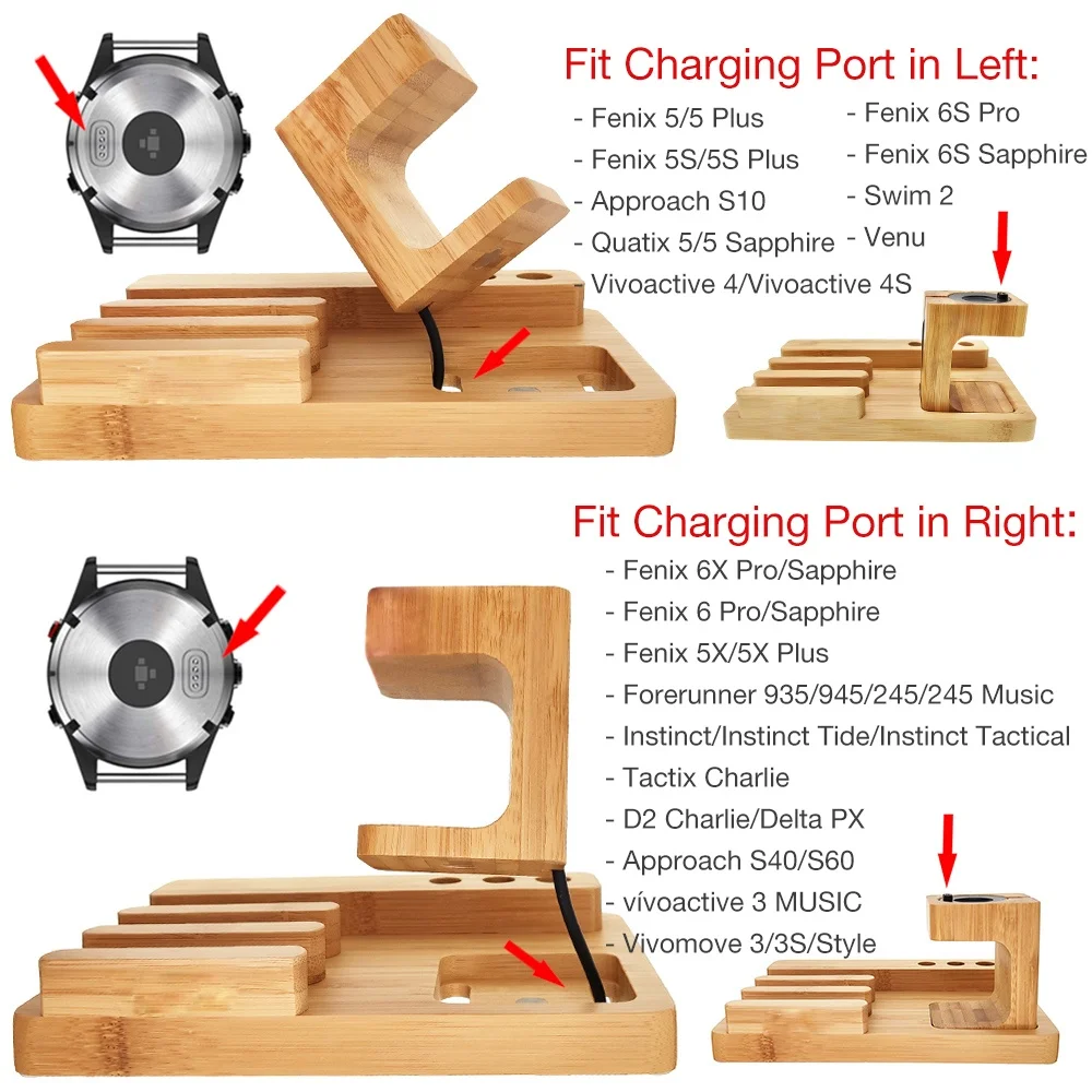 Зарядная док-станция Fenix 6, из бамбука, держатель для Garmin Fenix 55X5Sнастольный органайзер с кабелем для зарядки