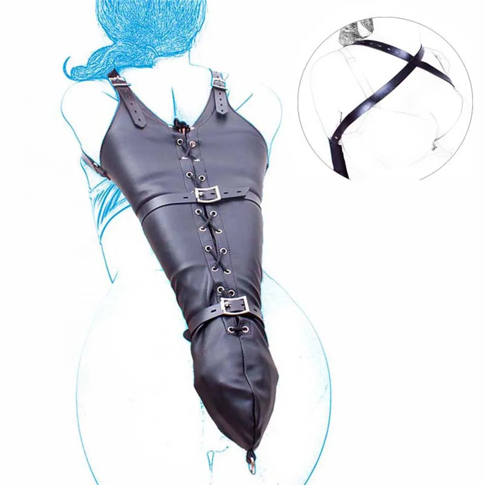 CamaTech из искусственной кожи, узкие одиночные перчатки, прямая куртка, армейдер с лямками через плечо, бандаж на рукавах
