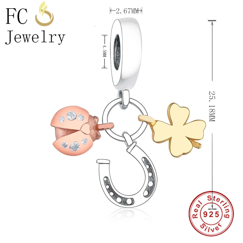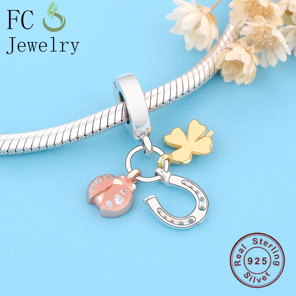 FC ювелирные изделия подходят оригинальные брендовые Подвески Браслет Pulsera 925 Серебро Клевер розовое золото бусины божья коровка изготовление подвесок Berloque 2019