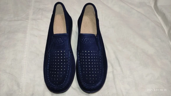 Не успевала за действиями продавца. Уверил меня, что эта обувь из натуральной замши, несмотря на дешевизну товара и не совсем точное описание товара. Оказался прав. Замша-верх, фабричное изготовление обуви, размер, который я заказала, оказался ровно тем, что хотела. На выпирающие косточки-полнота туфель - 10. Доставка-невероятной скорости. Я в совершенно приятно удивлена покупкой. Так что, покупайте здесь обувь, очень советую. Размер в размер и ничего не бойтесь. Такую модель покупала в Москве в 3 раза дороже. Решила поэкспериментировать. Удалось. Получила один в один эту же обувь дешевле. Продавцу обещала, если это его обувь, буду покупать только у него. Всё. Попалась. . Спасибо большое за отличную обувь.