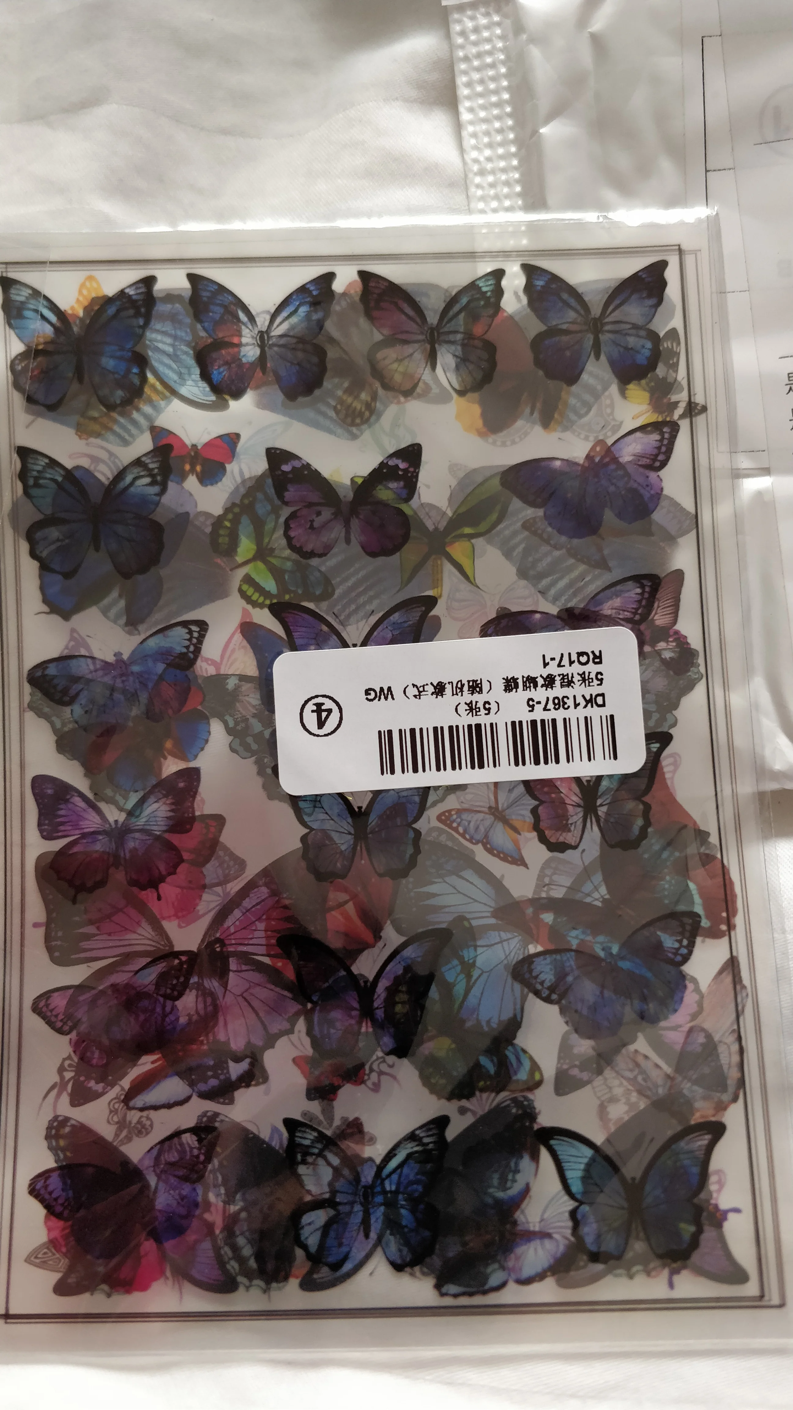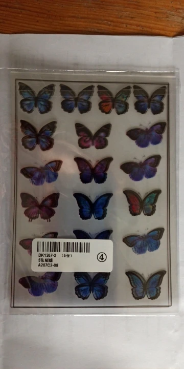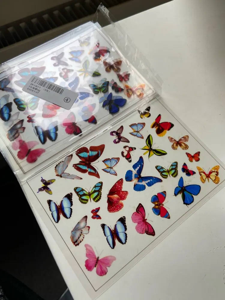 Бабочки очень красивые, качественно напечатаны на прозрачной пленке, хорошо упакованы, ничего не помялось при транспортировке. Продавец положил милый подарок- значок с принцессой Леей - спасибо большое! Доставили чуть меньше чем за месяц.