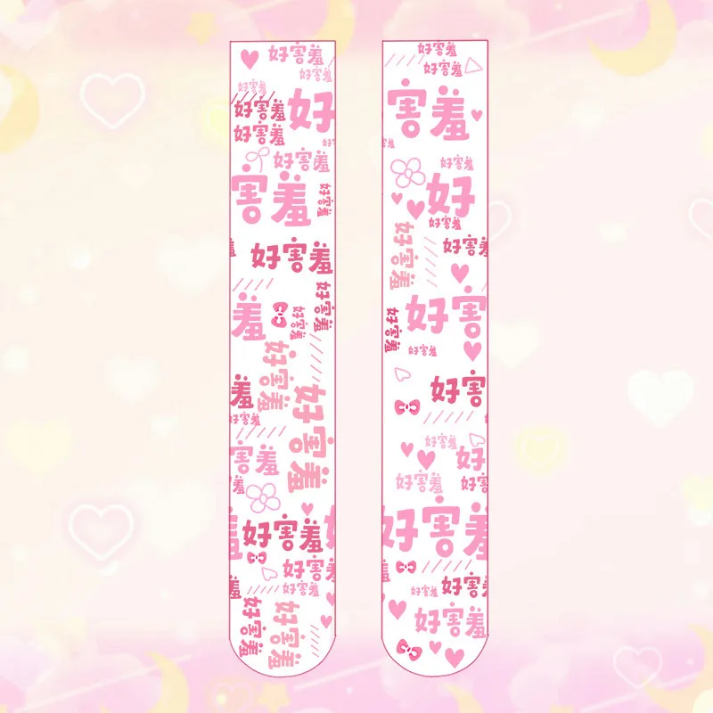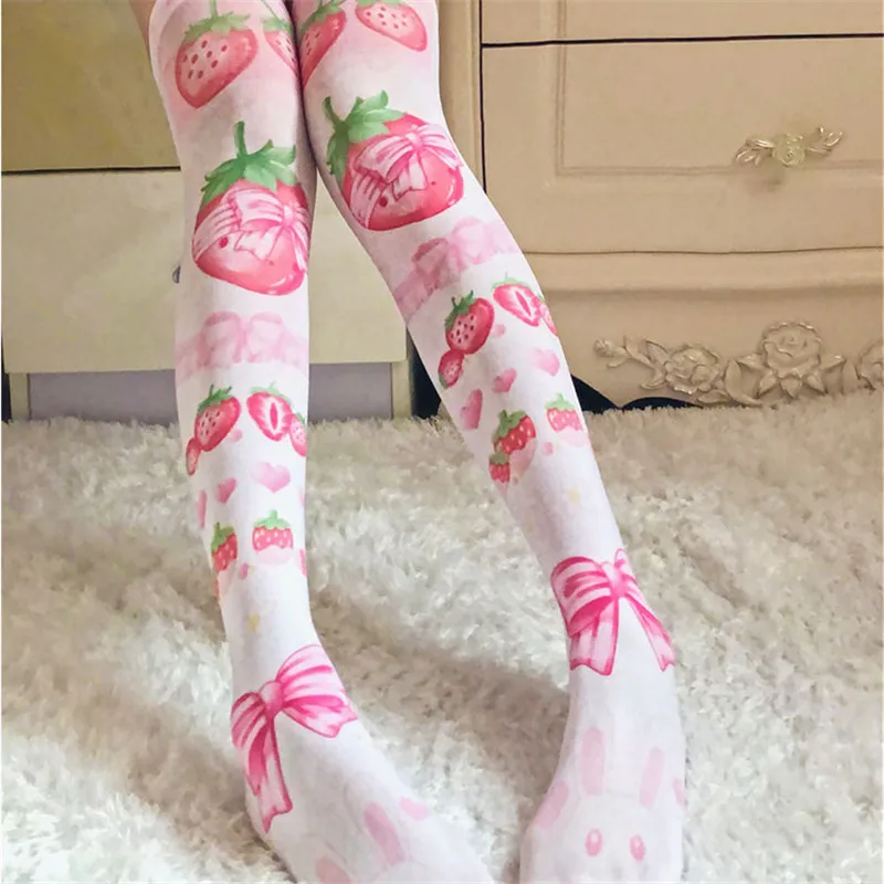 Пикантные женские длинные чулки с принтом, Необычные чулки для косплея, японские кавайные тонкие чулки выше колена, милые розовые чулки до бедра