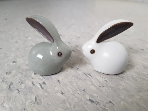 Керамическая статуя чая кунг-фу, кролик, чай, любимое домашнее животное, фэн-шуй, традиционное китайское ремесло, подарок, милое животное, белый и зеленый цвет, домашний декор