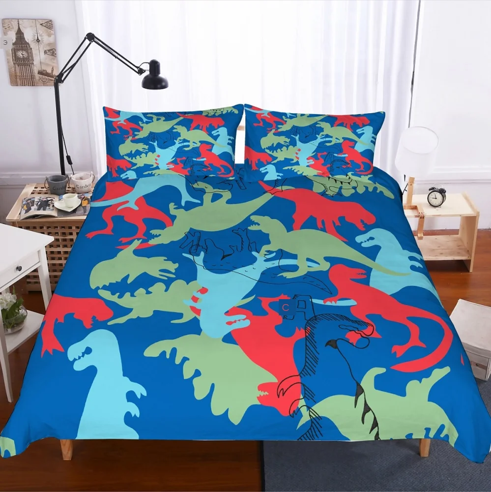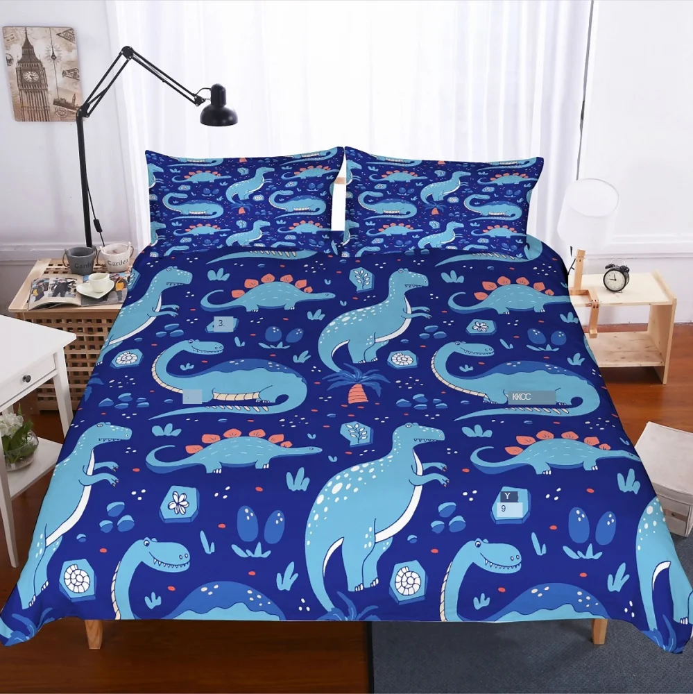 Комплект постельного белья для мальчиков с мультяшными динозаврами Односпальный, Двуспальный, Королевский или Кинг Сайз Комплект постельного белья с пододеяльником из 2/3 предметов Комплект постельного белья без одеяла