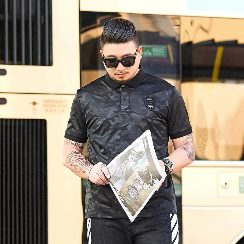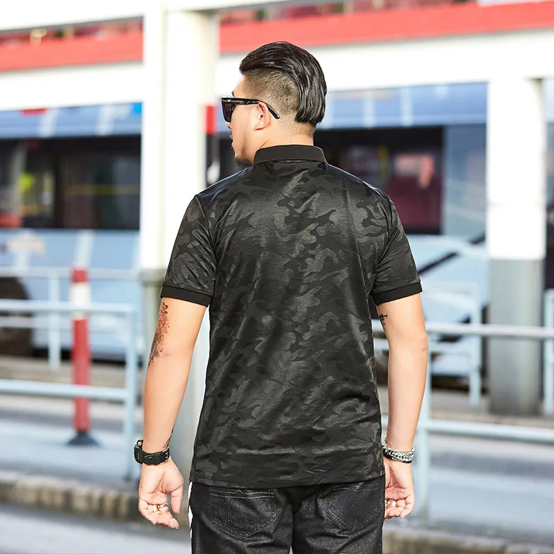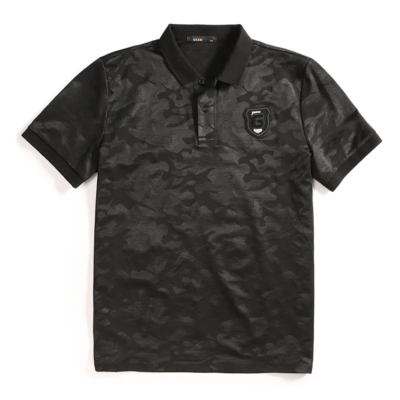 Мужская Повседневная рубашка-поло GXXH, черная камуфляжная рубашка с отложным воротником и коротким рукавом, лето