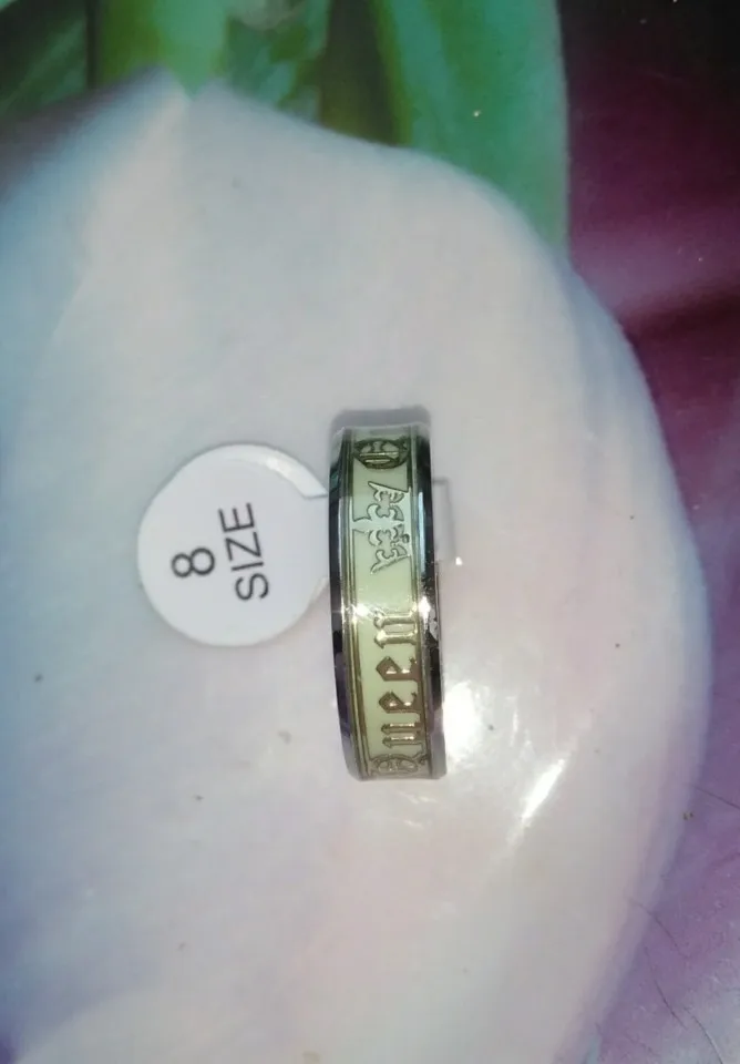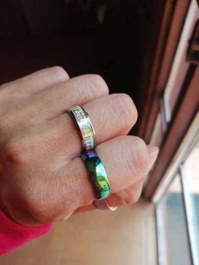 Колечко интересное, действительно из нержавейки и светится в темноте светло-салатным цветом. Такое же, как на фото продавца! Обожаю кольца из нержавейки! Они очень гадкие, комфортно надеваются и снимаются. А главное - вечные! Надоест быстрее, чем сносится, да ещё и за копейки! Смотрится, как родированное серебро. Советую. Размер 8 соответствует нашему 18. Супердоставка - всего 2,5 недели до Украины! Получила сразу 16 заказов в одной посылке! Благодарю поставщика, который составляет сборные посылки, начинающиеся с "AENM0000..." Они доходят ВСЕГДА! Продавца и его магазин рекомендую. Всегда стараюсь оставлять подробные и честные отзывы. Прошу покупателей тоже оставлять отзывы с указанием своего размера и размера (если он есть) купленного изделия, их соответствие. Отзывы должны помогать другим покупателям выбрать товар. Всем добра и удачных покупок!