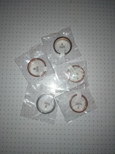 Колца пришли за 10 дней, быстрая доставка ,,пятерочки ,,. Заказала размер 9 и 13. 13 размер для мужчины очень огромный, сильно велико! Хотя и мне,9 размер болтается на пальце. С размерами я промахнулась. Колечки интересные,в темноте светятся. Спасибо продавцу.