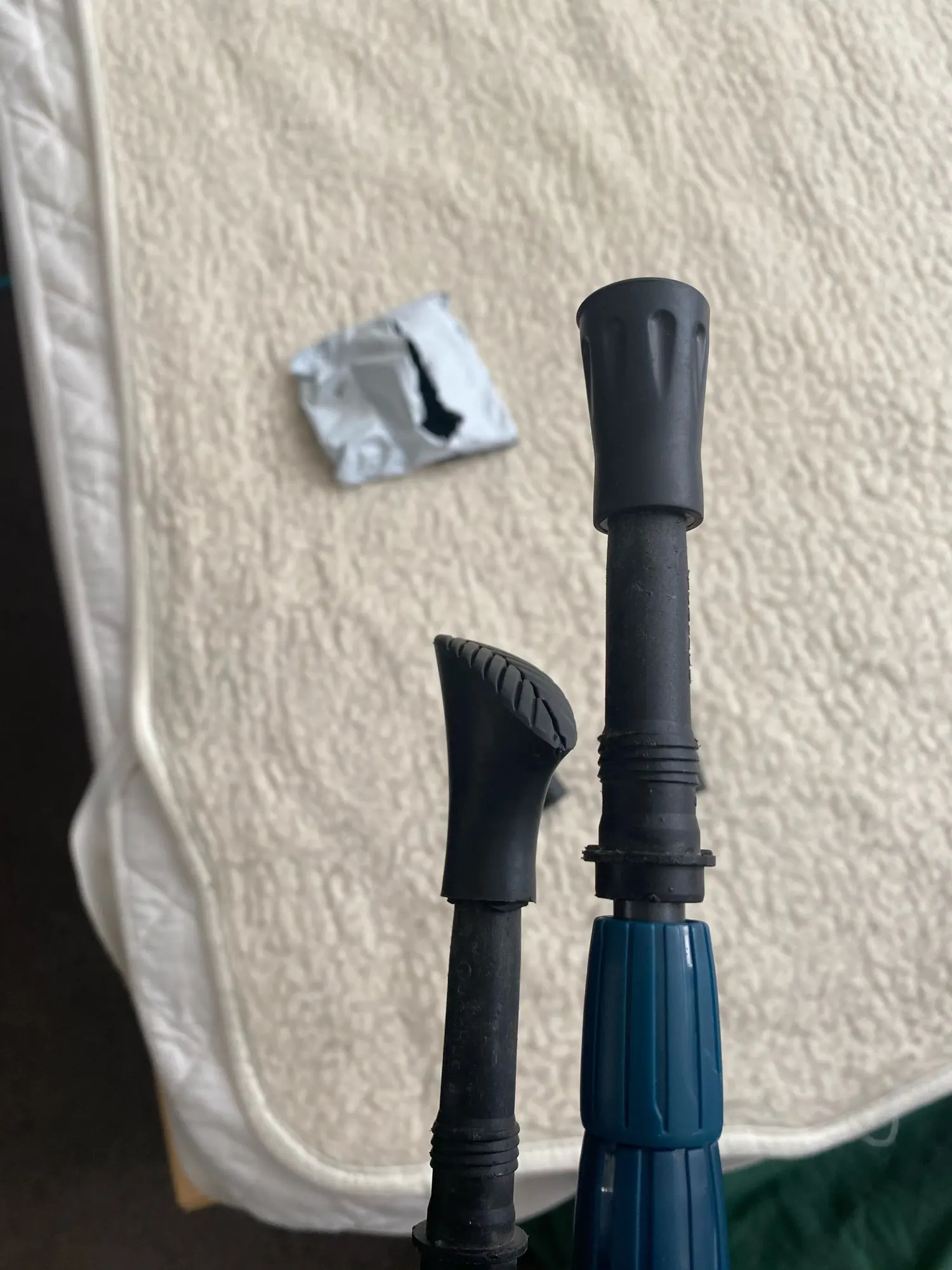 Старые алюминиевые лыжные палки, ранее получил наконечники, теперь держатели - получился хороший комплект для скандинавской ходьбы. Дёшево.