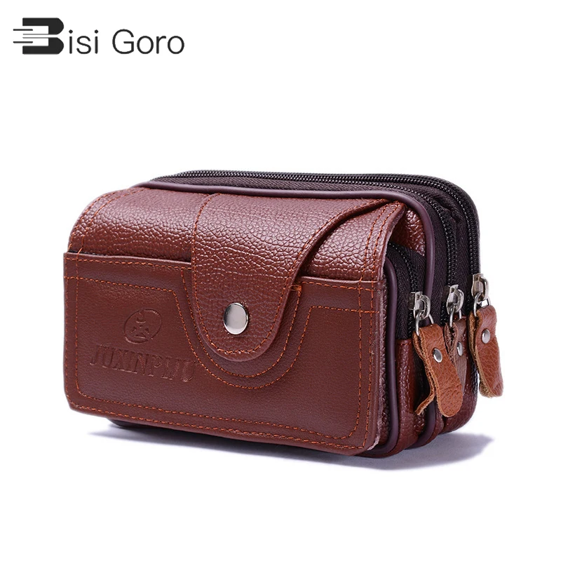 Винтажная поясная сумка из ПУ кожи BISI GORO 2021, многофункциональная поясная сумка для телефона и монет, винтажный маленький кошелек унисекс, уличный кошелек для мужчин и женщин