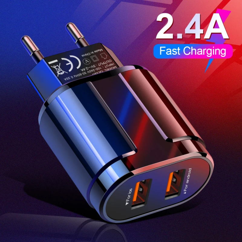 Двойное зарядное устройство для iPhone, Samsung, Sony, Xiaomi, Huawei, 5 В, 2,4 А, адаптер, мобильный телефон, USB, быстрая зарядка, вилка стандарта ЕС, США, адаптер для телефона