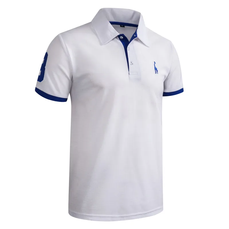 футболка мужская 13 цветов положираф Футболка мужская олень вышивка короткий рукав футболки повседневные отложной воротник Топы тройники футболки мужские