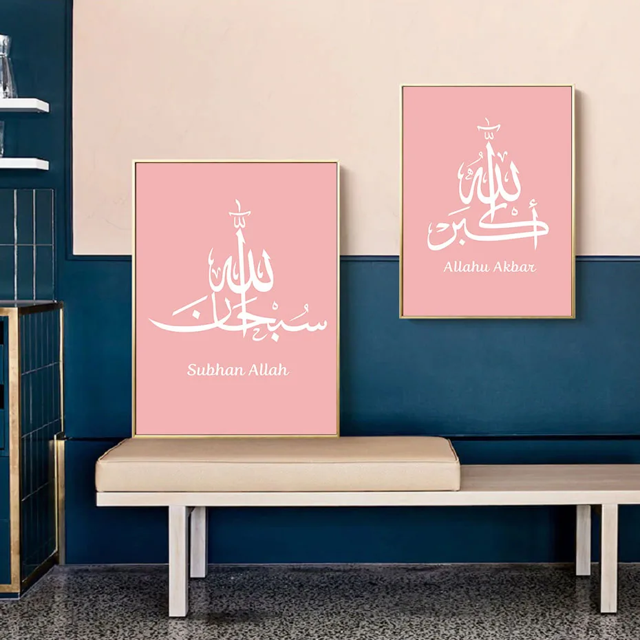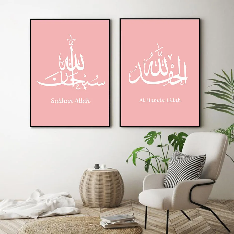 Розовая Исламская Настенная картина, мусульманские плакаты и принты, картины на холсте, картины для гостиной, украшение для дома