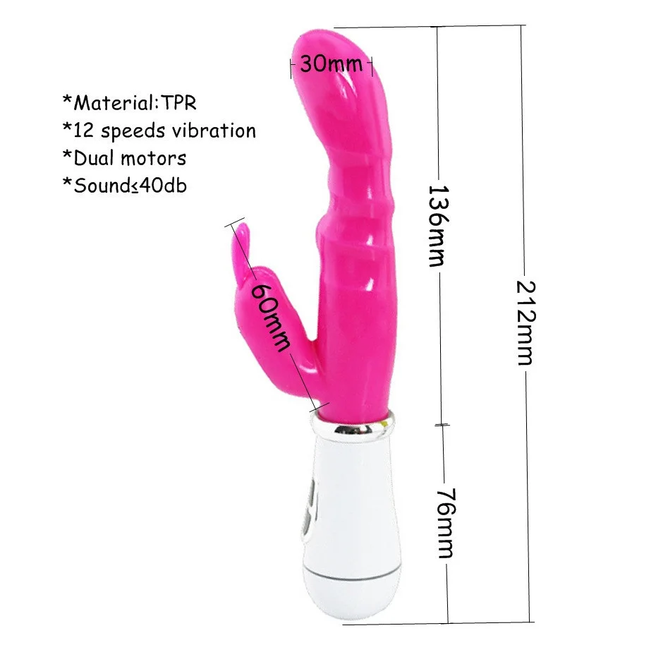 * Материал: TPR* Аккумулятор: 2 * AAA батареи (не входят в комплект)* 12 Вибратор на несколько скоростей* Двойные двигатели* Sound≤ 40 дБ