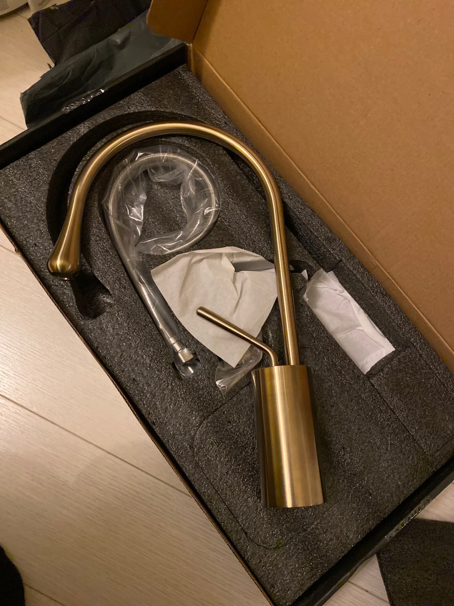 Кран более элегантный, чем показано на фотографиях. Дизайн шикарный и материал хорошего качества. Прибыл очень быстро, около 9 дней после отправки.