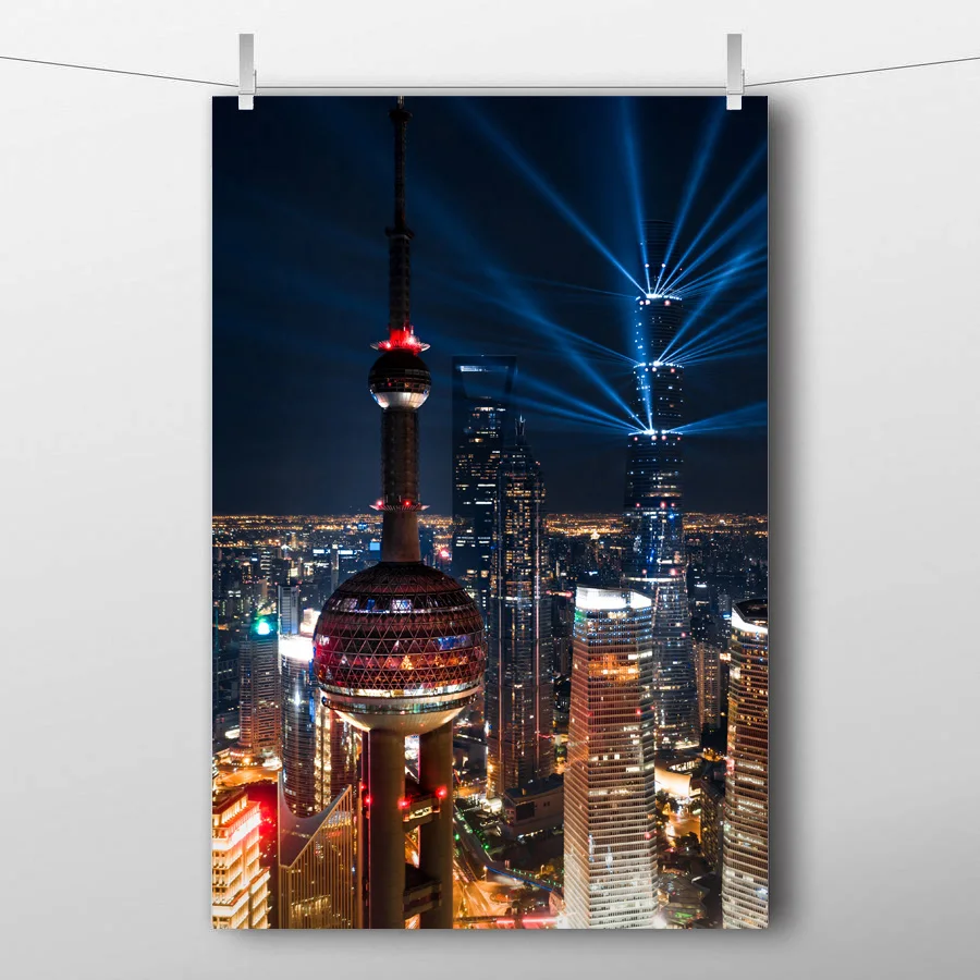 Декоративные картины небоскреб Огни ночного города шанхай изображение напечатано холст ткань стены искусства плакат для комнаты настенный Декор