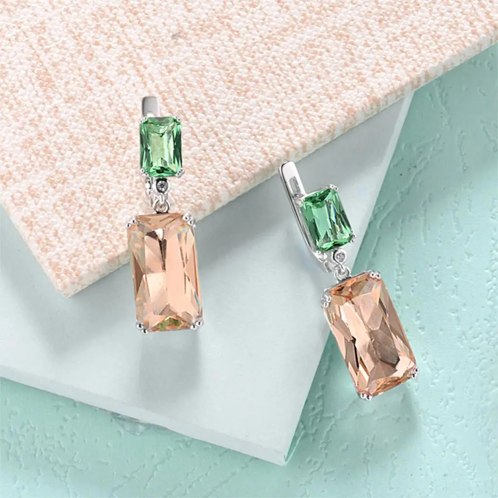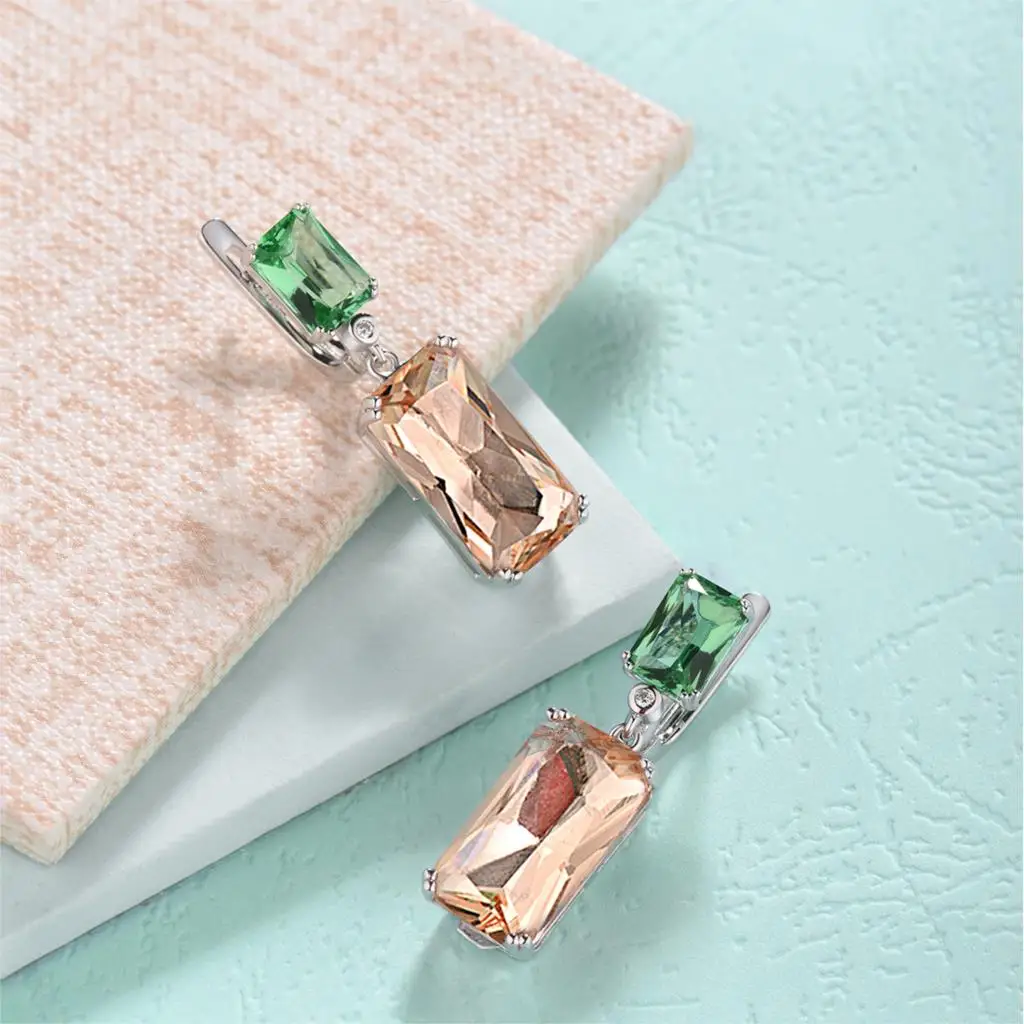 Женские серебряные сережки-подвески SANTUZZA, из серебра 925 пробы с блестящим кристаллом зеленого цвета шампанского, модные ювелирные украшения
