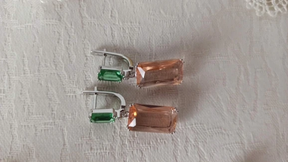 Серьги просто восхитительные! Камни красивые, прозрачные, серьги не тяжелые. Размер серёжек не очень большой, смотрятся очень изящно.