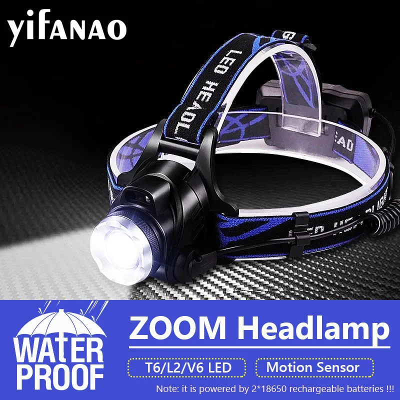 Налобный фонарь для рыбалки, водонепроницаемый, с ИК-датчиком, 18650 лм