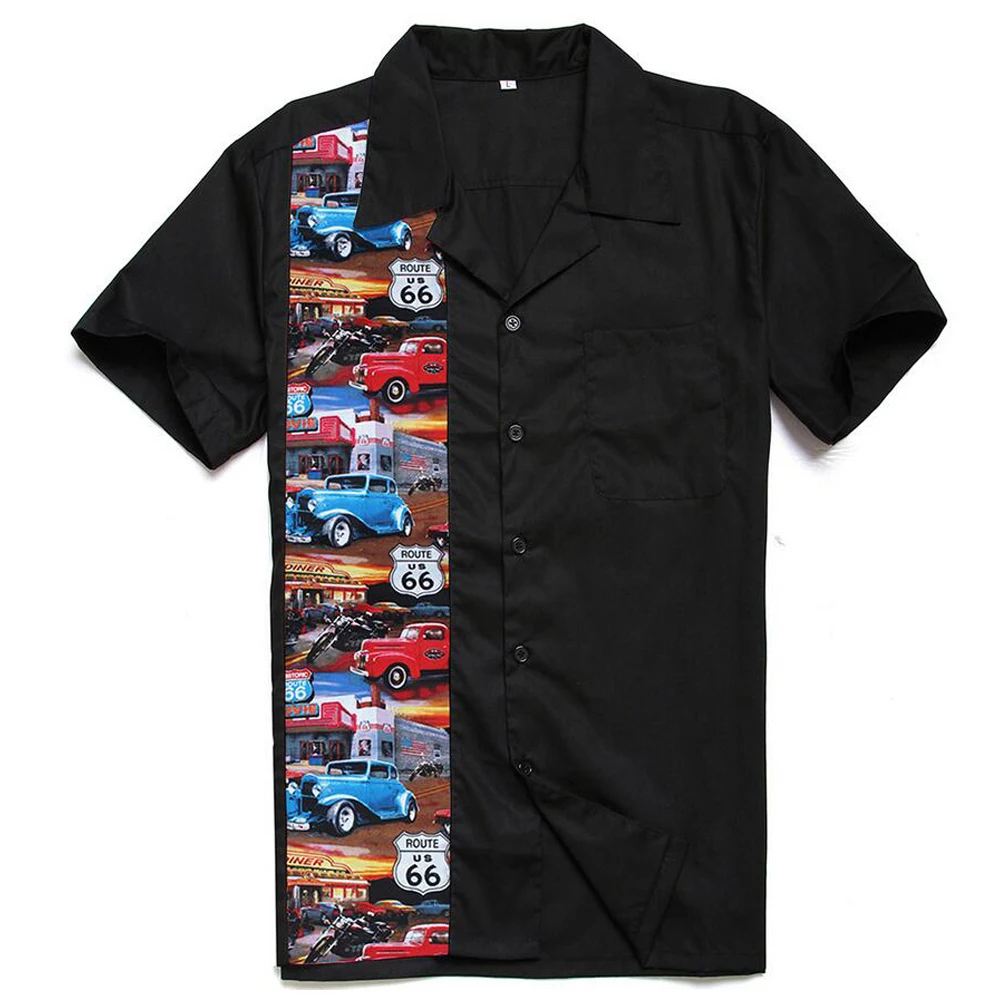 Мужская рубашка с коротким рукавом, в стиле ретро, в ковбойском стиле, в стиле рокабилли, 1950