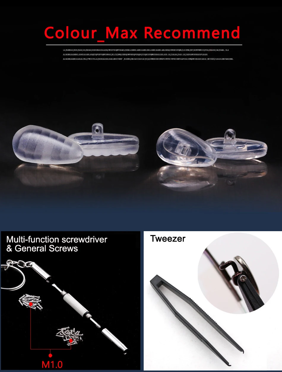 Идеальный комплект. Отвертка тонкая, но прочно. Винты регулируются. За короткое время обе носовые спрей заменены. Очень мягкий на носу. Очки теперь гораздо более удобные. Быстрая доставка.