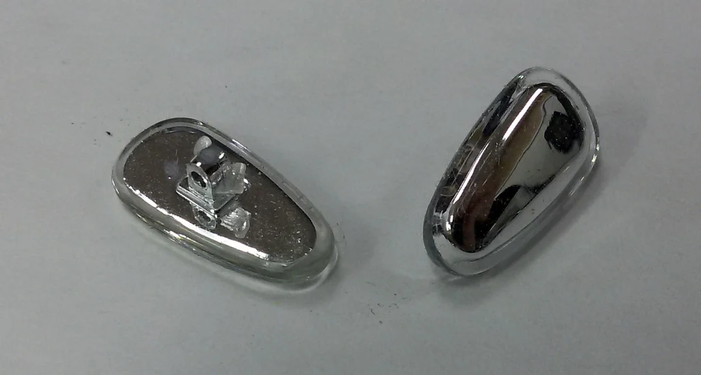 Пришло за три недели, серебристый пластмас а вокруг него силикон.