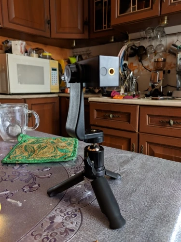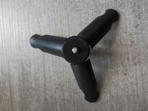 Компактный штатив, сделан качественно. В разложенном состоянии коло 4 см от поверхности, так что если снимать выше, нужна подставка. У ножек 2 положения - сложено и полностью разложено. В промежуточных положениях не фиксируются, но стоять могут на честном слове. Угол наклона телефона/камеры не регулируется, то есть снимаем всегда параллельно земле.