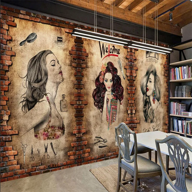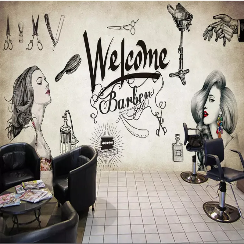 Ретро Макияж Салон красоты волосы стиль hcourse фон настенная бумага 3D Парикмахерская промышленный Декор настенная бумага 3D