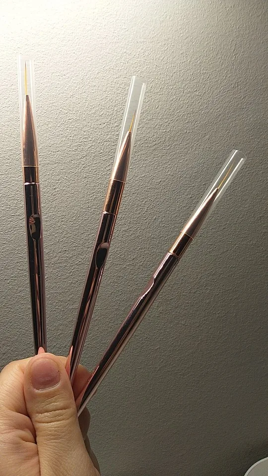 Кисти для дизайна ногтей, 3 шт.компл., розовое золото, тонкая металлическая ручка, ручка-лайнер для рисования, для самостоятельной сборки УФ-геля, Наборы инструментов для маникюра