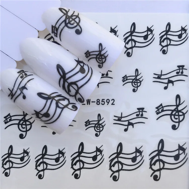 Наклейки для дизайна ногтей, Водные Наклейки, музыкальные ноты, линии, наклейки для ногтей, декоративные аксессуары для дизайна, фольгированные обертывания для маникюра