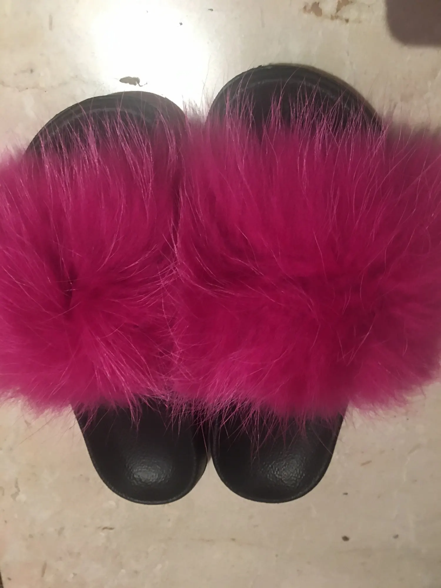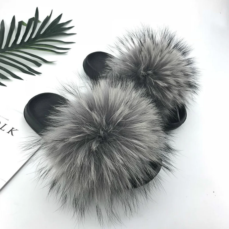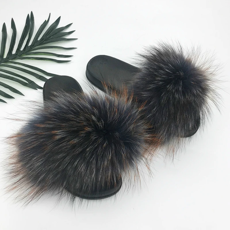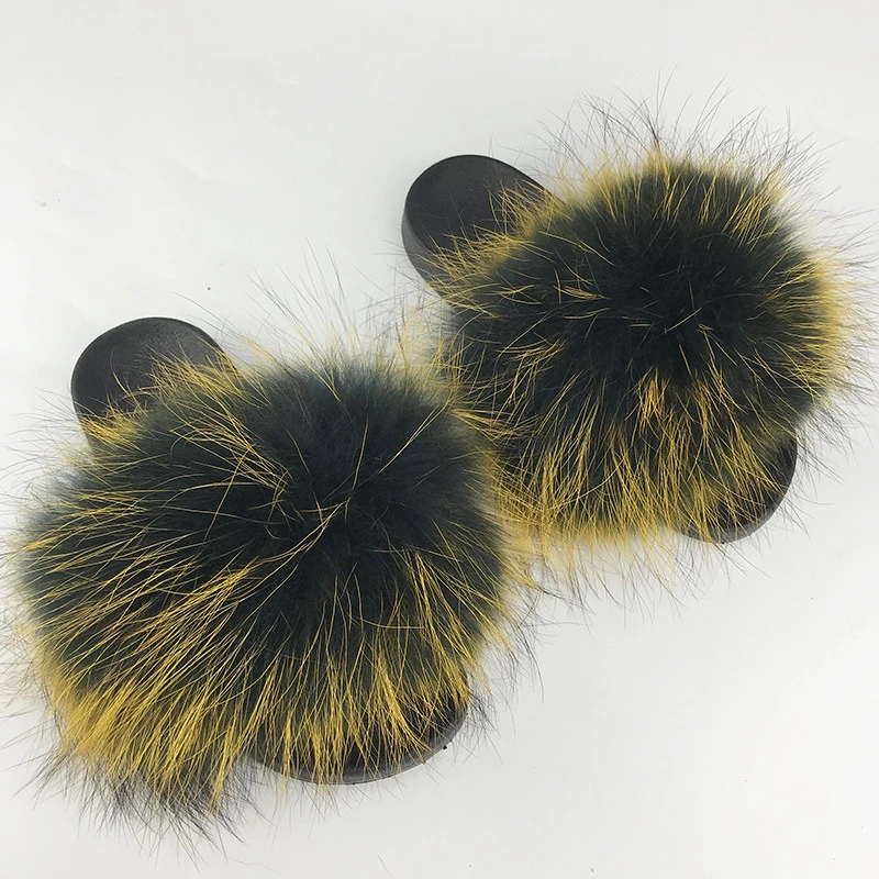 Женские меховые тапочки, сланцы летняя обувь, домашние, роскошные, с мехом енота, 2019, размера плюс