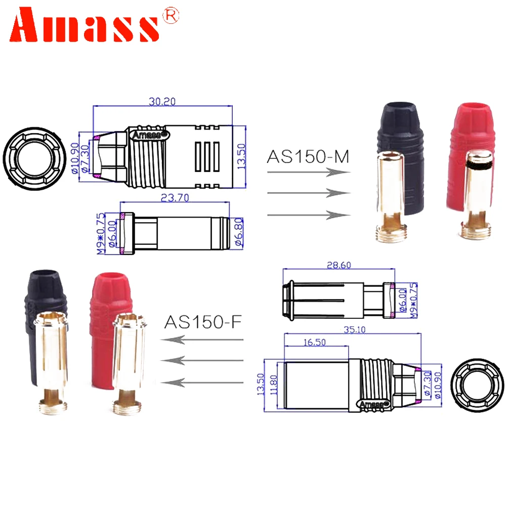 1 пара Amass AS150 Мужской Женский Разъем против свечи 7 мм позолоченный набор банановых штекеров для аккумулятора ESC и зарядного провода для игрушек RC