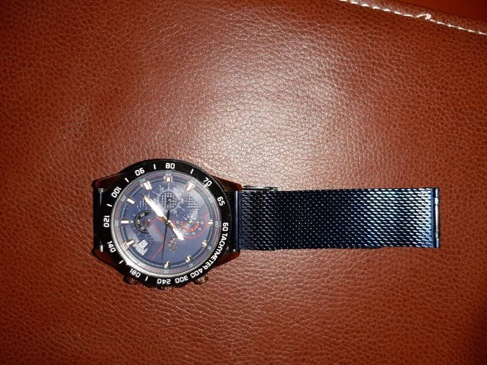 Отличное качество, отличные массивные часы, прочный металлический ремешок, все chrono циферблаты работают хорошо