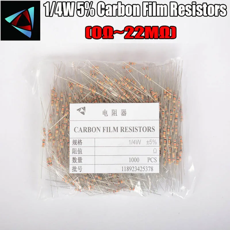 1000 шт. 14 Вт 0,25 Вт 5% карбоновый пленочный резистор 0R 10 м 100R 220R 330R 1K 2,2 K 3,3 K 4,7 K 10K 22K 47K 100K 0,47 100 220 330 680 ом