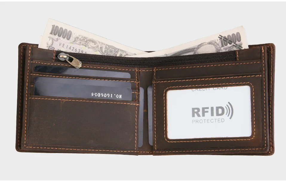 Мужской короткий кошелек из кожи Крейзи Хорс, кожаный противокражны...