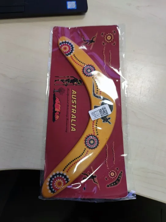 Бумеранг деревянный, доставлен меньше чем за месяц. После столкновения с воротами, появилась вмятина. Товаром дети довольны.