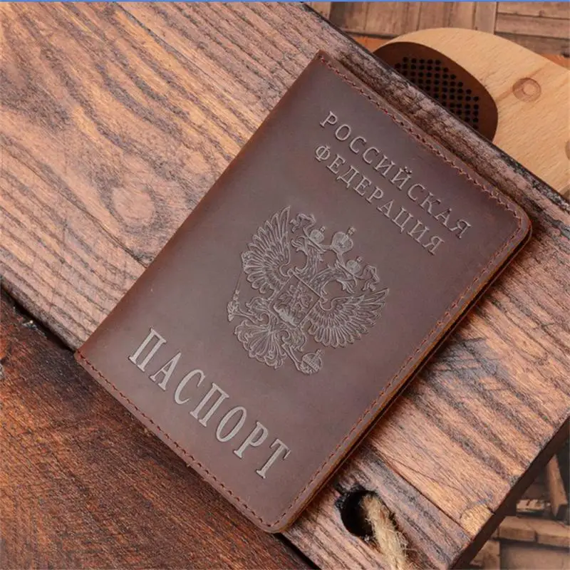 Обложка для российского паспорта из натуральной кожи, однотонный чехол унисекс для удостоверения личности и кредитных карт, чехол для путешествий