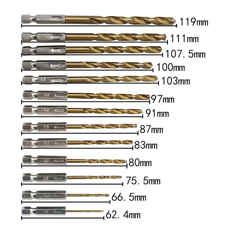 13 шт. набор сверл с титановым покрытием из быстрорежущей стали с шестигранным хвостовиком 1/4"