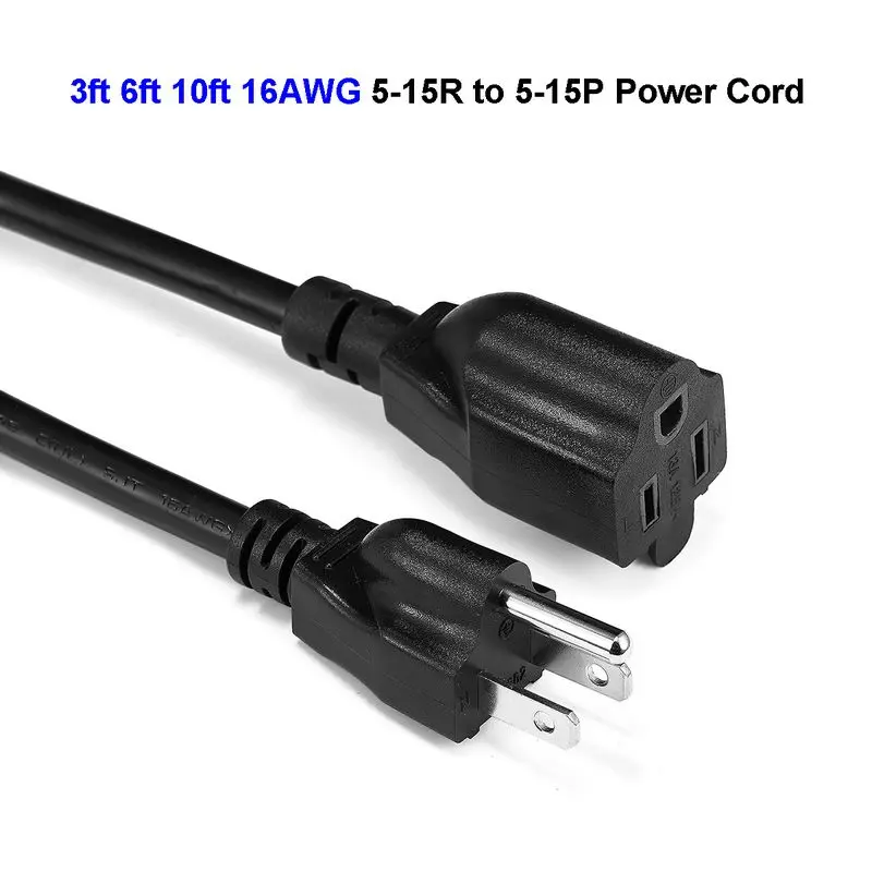 100% новый 5-15P до 5-15R кабель питания Калибр провода: 16AWG/1,31 мм2x3 Напряжение/ток: 125 В 13A Материал проводника: медь Изоляционный материал: ПВХ Тип наконечника: NEMA 5-15P Тип гнездового конца: NEMA 5-15R Длина кабеля (прибл.): 1 м/2 м/3 м опционально Certificatioin : ULПакет включает в себя: