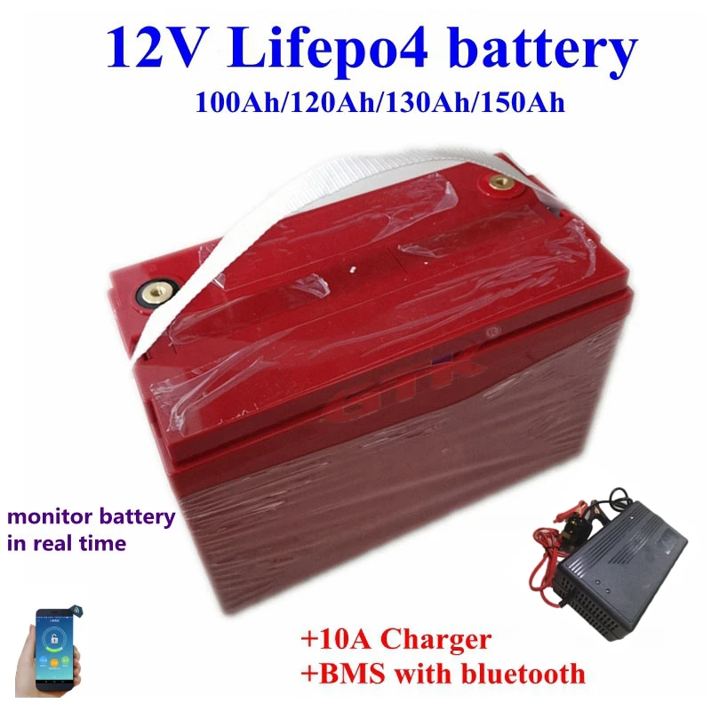 Водонепроницаемый 12В 100ач 120ач 130ач 150ач Lifepo4 batteryBMS с bluetooth для 1200 Вт солнечной системы мотор домашняя Лодка RV + 10А зарядное устройство