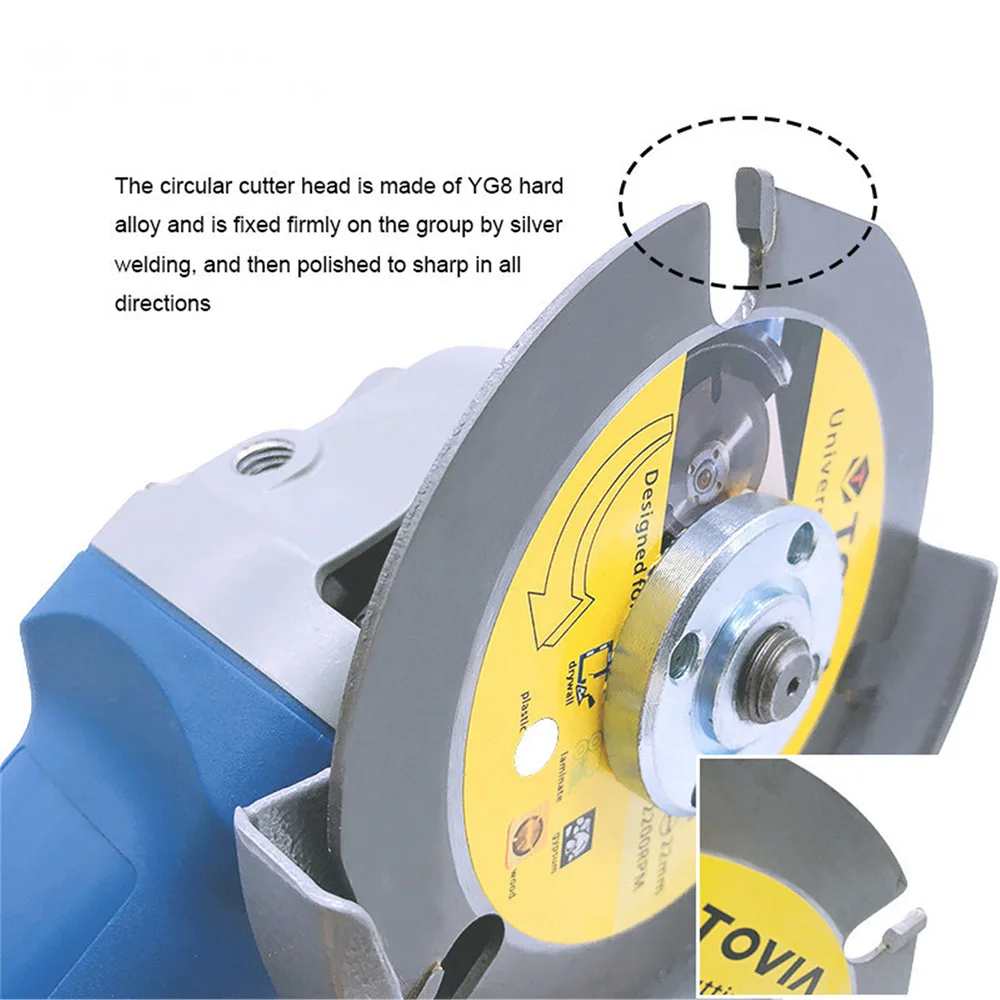 Круговая режущая головка изготовлена из твердого сплава YG8 и прочно фиксируется в комплекте серебристой сваркой, а затем полируется до острых во всех направлении. В лезвие пилы имеет