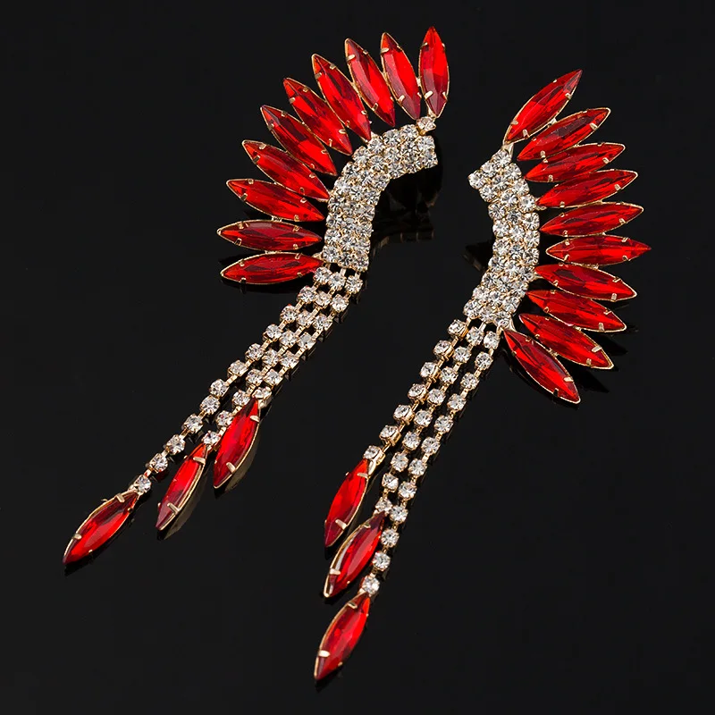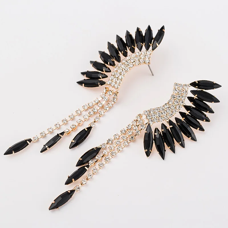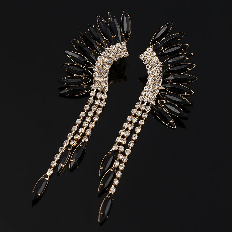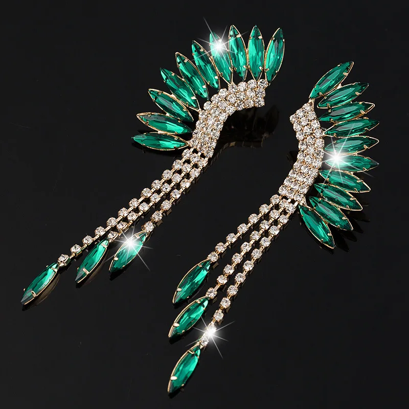 Серьги-кисточки женские, черные, красные, зеленые, со стразами, стразы, серьги на свадебную вечеринку
