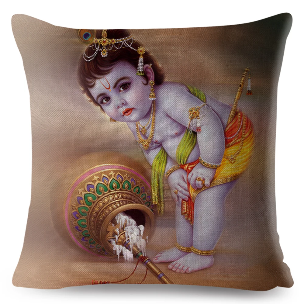 Наволочки для подушек, изображение индийского буддизма и мифологии, квадратные льняные наволочки для диванных подушек, чехол для подушки с принтом, 45 х45