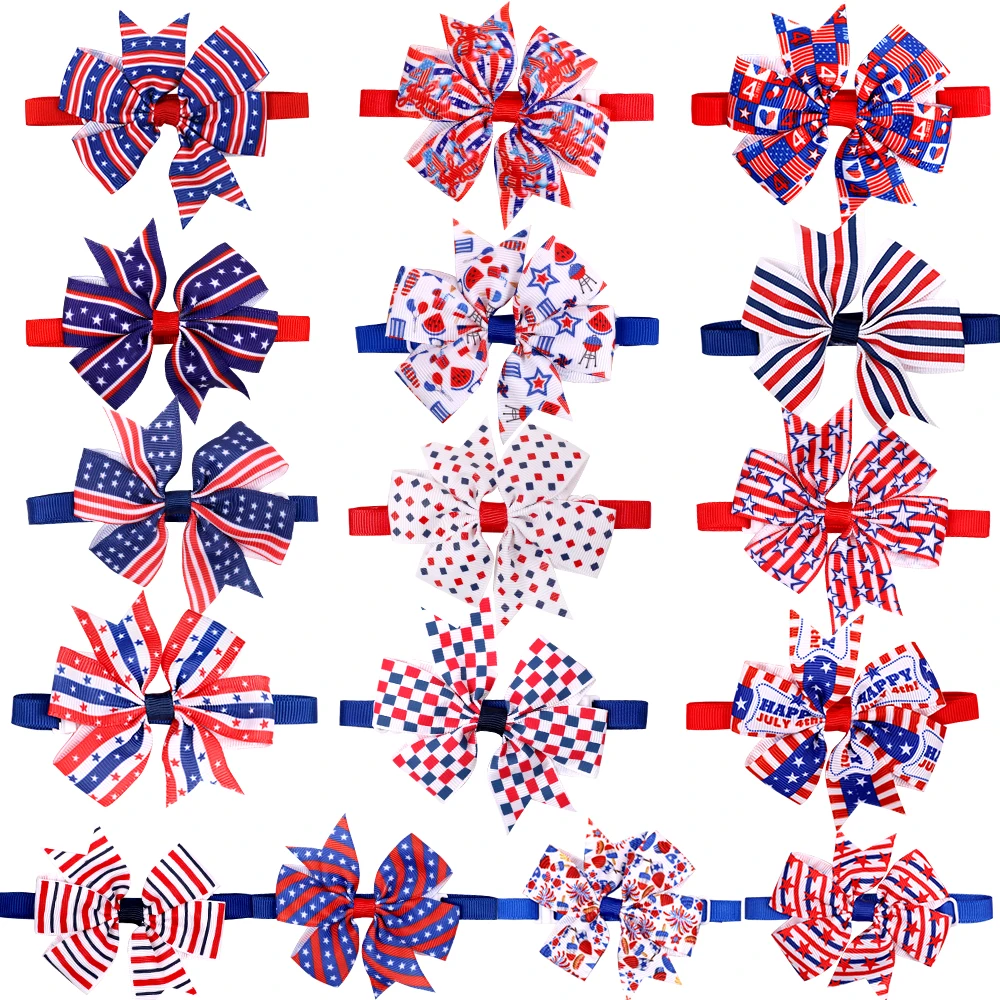60 шт. 4 июля4 июля регулируемый галстук-бабочка для питомца щенка кота собаки бантик ошейник аксессуары для ухода за домашними животными