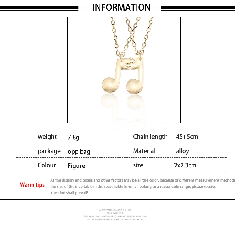 2 шт.компл. индивидуальное модное ожерелье с нотами музыкальная дружба сшитая женская подвеска Лучший Друг BFF ожерелье для пар подарок