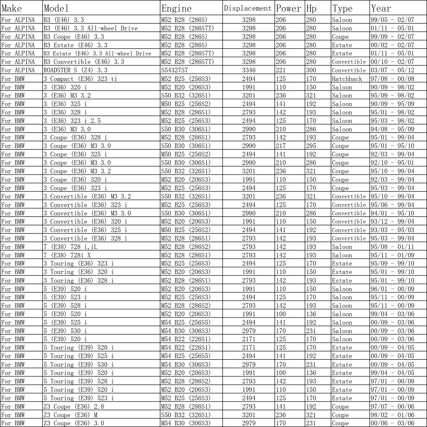 Приспособление:ДЛЯ Alpina B3 E46Для BMW 3 E36 E46Для BMW 3 Convertible E36 E46Для BMW 3 Compact E36 E46Для BMW 3 Coupe E36 E46Для BMW 3 Touring E36 E46Для BMW 5 E39Для BMW 5 Touring E39Для BMW 7 E38Для BMW Z3 Coupe E36Для BMW Z3 Convertible E36 E85Для BMW Z4 E85 E86Для BMW X3 E83