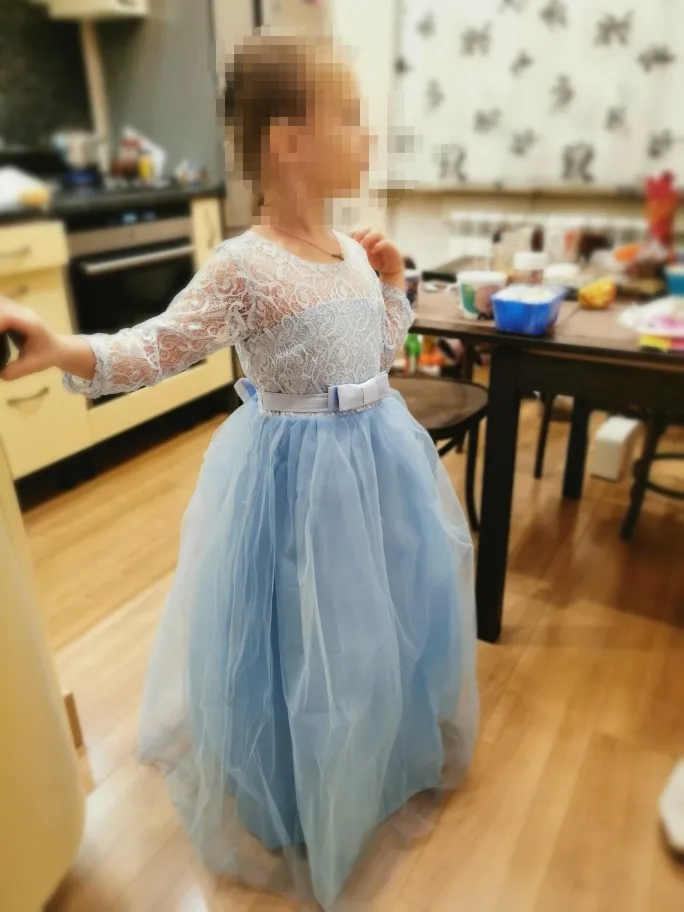 Быстрая доставка. Красивое платье, на платье рост 140. На высокую девочку 6 лет подошло идеально.