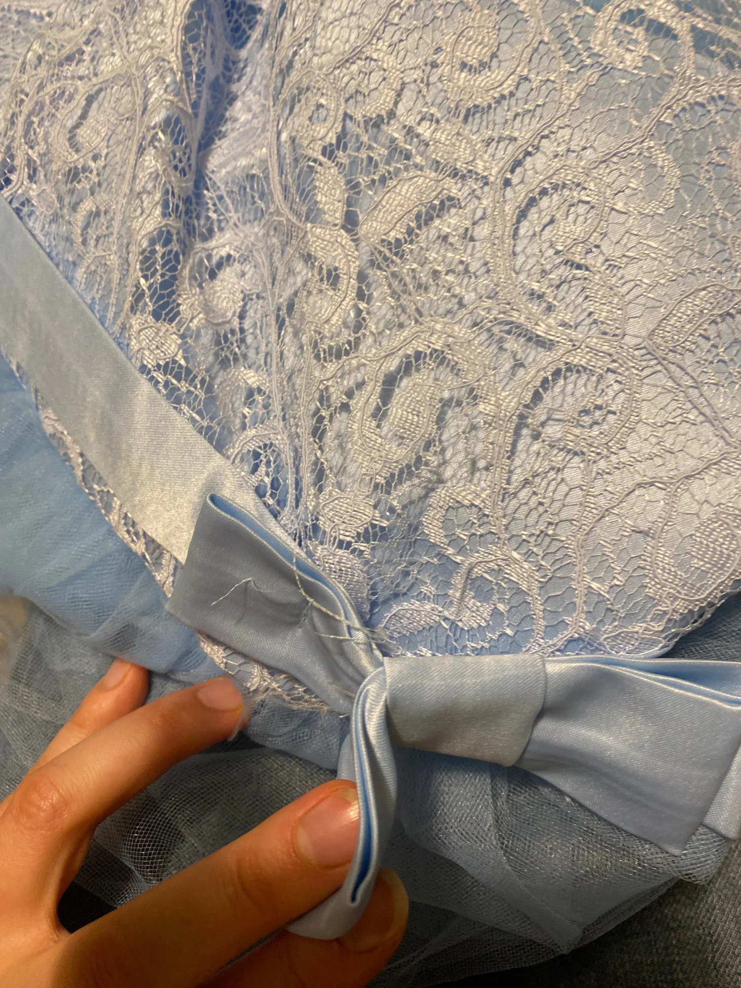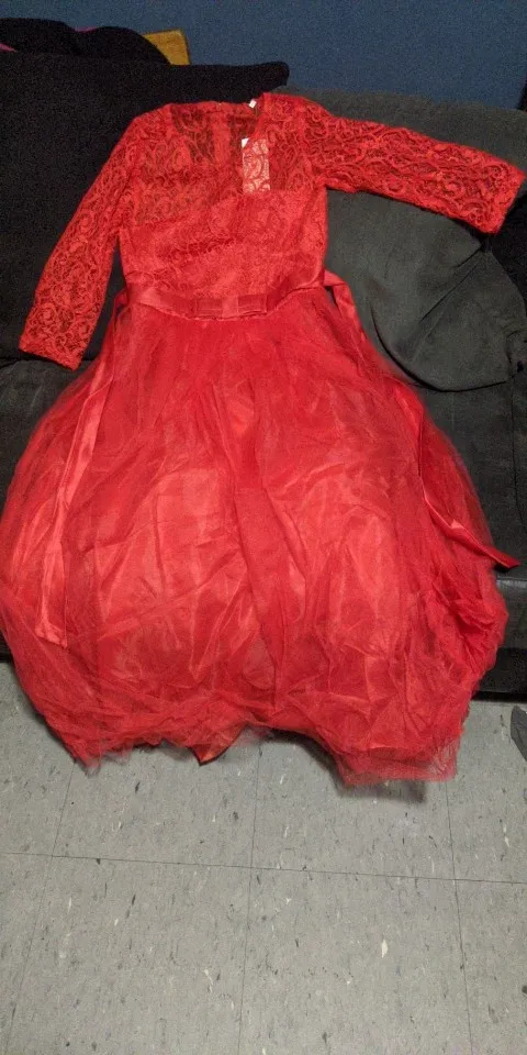 У моей дочери американский размер 14/16, детская одежда, размер 170, идеально подходит! Платье не выцветает, как на картинке, но оно все равно красиво, независимо от того, Я думаю, что доставка займет около месяца. Там была небольшая часть сзади, где она не была сшита. Молния плохо сшита. Мне нужно было разрезать его лезвием, потому что материал все время попадал, когда я попробовал расстегнуть его. Была только одна часть, где мне нужно было это сделать, и после этого он расстегнулся идеально. Я не застегивал его на картинку, потому что не хотел, чтобы моя дочь застревала в платье, в случае, если молния снова поставила мне проблему, однако я сделал «закрытую» вещь, когда вы потяните ее вместе, и она отлично подходит.
