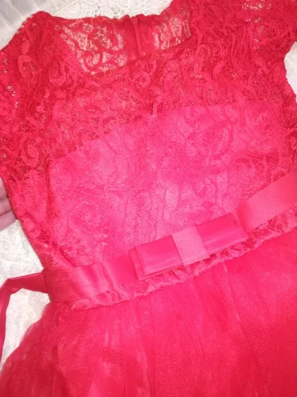 Отличное платье за эти деньги. Есть немного торчащих ниток у банта, кружево мягкое. Продавец отправил быстро (я ему написала. У дочки др был) дошло за 7 дней. Спасибо!