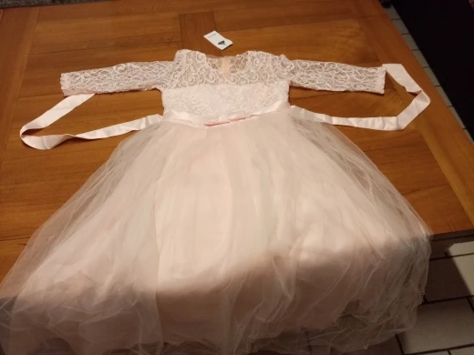 Платье пришло быстро, на девочку 7 лет великовато на размер, есть небольшие косяки, криво пришить бант спереди придётся отпаривать и перешивать. Ну а целом платье красивое. Продавец отправил быстро, продавца рекомендую.
